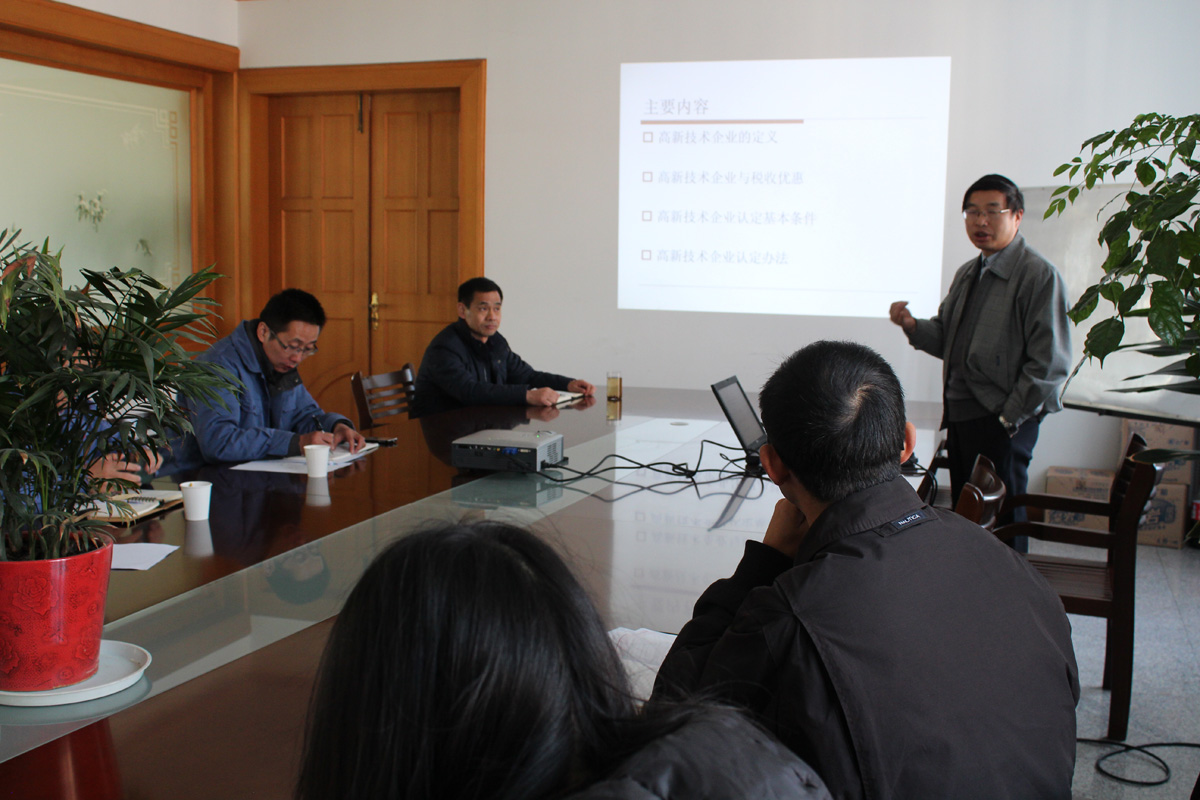 圖為張軍教授在給公司管理層解讀高新企業(yè)申報要領