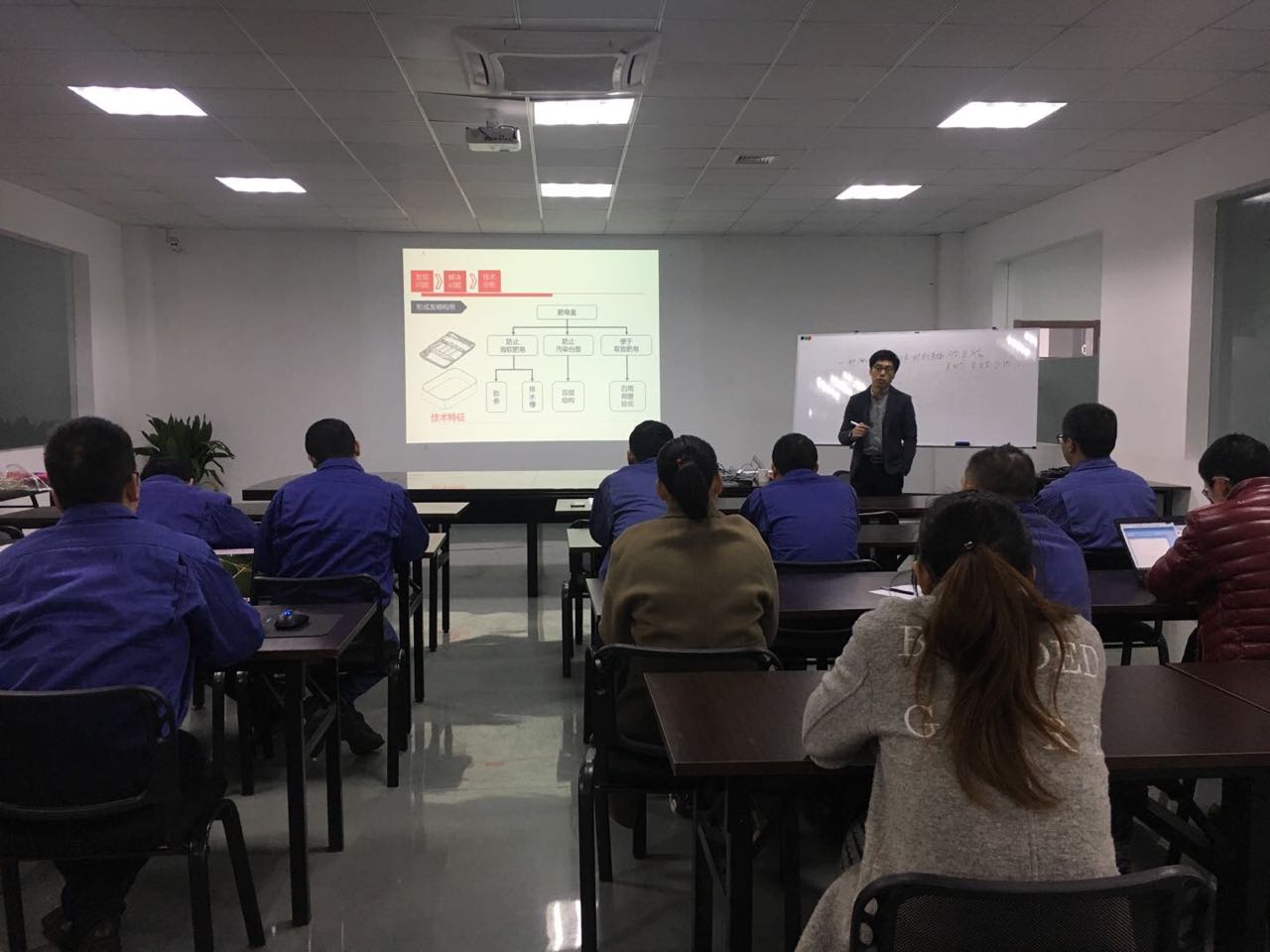 公司中高層管理人員悉數(shù)到位,蔣老師先就行業(yè)專利申請量、國家知識產(chǎn)權局機構改革、專利法的修訂,以及知識產(chǎn)權審查等知識產(chǎn)權背景和發(fā)展趨勢進行了詳細的介紹,并與各部門領導在產(chǎn)品生產(chǎn)和銷售、人事管理、侵權金額判定、專利申請時機的把握和軟件著作權等方面進行了交流。在對技術人員的培訓會上,重點介紹了專利技術方案的挖掘方法和步驟,教大家如何判定專利侵權和如何規(guī)避設計等專業(yè)知識。參培人員積極參與互動交流,認真學習,培訓目標圓滿完成。