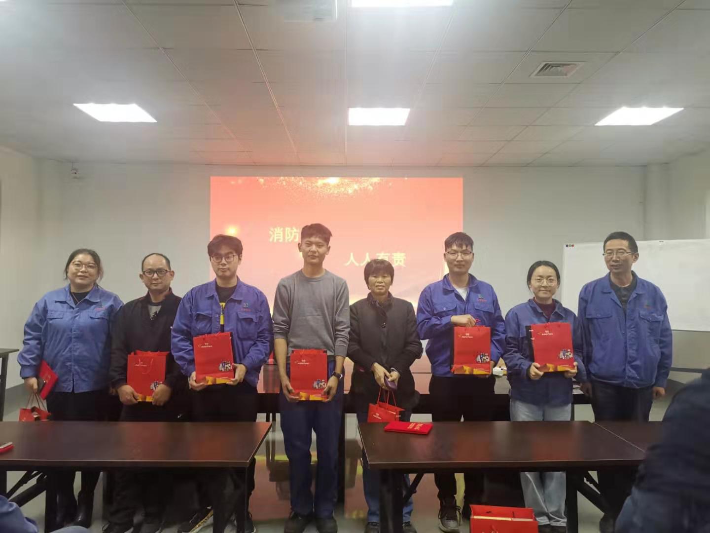 2019年11月9日,公司舉辦了第一屆安全消防競(jìng)賽活動(dòng),活動(dòng)分為理論知識(shí)和實(shí)踐操作兩個(gè)部分。經(jīng)過激烈的考核和評(píng)比,評(píng)出了一等獎(jiǎng)兩名、二等獎(jiǎng)和三等獎(jiǎng)各一名。生產(chǎn)副總徐建和總經(jīng)辦主任王威為獲獎(jiǎng)?wù)哳C獎(jiǎng)。